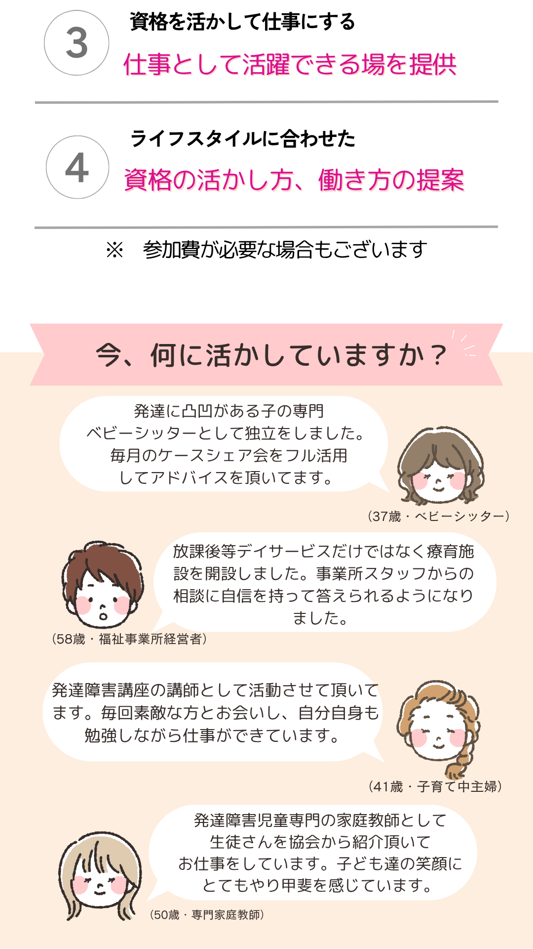 現在は、個別療育現場を行いながら発達障害理解者を増やすための活動に力を入れている。